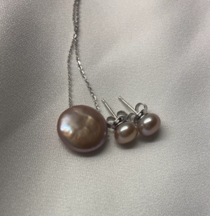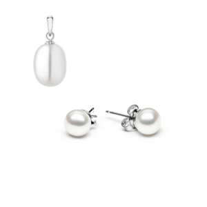 - Vedhæng og øreringe: Et elegant sæt med et perlevedhæng og matchende øreringe. Øreringene kan være enten med engelsk lås eller som ørestikker, afhængigt af din personlige præference.